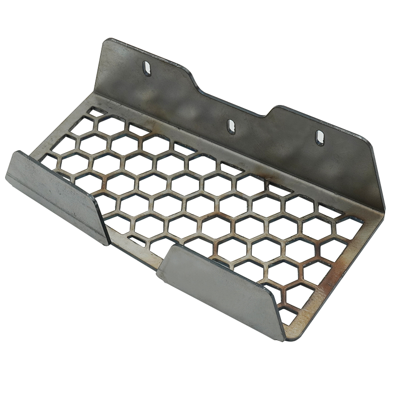 The first step in manufacturing the frame is laser cutting. The steel plate is carefully cut to the exact dimensions required for the frame, including the overall outline and internal cavities or holes that may be necessary for assembly or further mechanical functions.