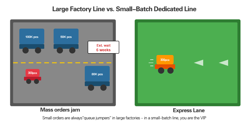Large factories skip small orders. Small-batch lines are key